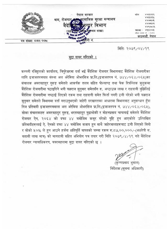 मुन ह्युमन रिसोर्स प्रा . लि. उपर मुद्धा दायर गरिएको